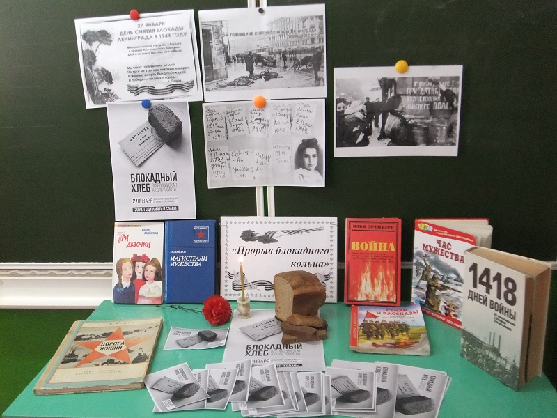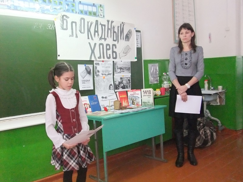 27 января  жители нашего села приняли активное участие совместно с Домом Культуры, библиотекой и Каировской ООШ  во Всероссийской Акции памяти «Блокадный хлеб». Мероприятие проходило в школе, для присутствующих была оформлена книжно-иллюстрированная выставка «Прорыв блокадного кольца». Заведующая Домом Культуры (Л.В. Анисимова) рассказала о Всероссийской Акции памяти «Блокадный хлеб», библиотекарь (В.В. Кажаева) рассказала о событиях блокады, о цене маленького кусочка хлеба, о подвиге советского народа, рассказ сопровождался показом слайдов. Дети читали стихи о блокадном Ленинграде, о тяжелом и голодном военном времени, когда порой единственной едой был кусочек хлеба весом всего лишь в 125 грамм. Присутствующим раздали кусочки хлеба, чтобы они смогли окунуться в ту суровую пору, положив драгоценный кусочек на ладонь. Видеоролики «Дневник Тани Вассоевич» и «Кусочек хлеба на один день в блокадном Ленинграде» не оставили никого равнодушными. Детям раздали листовки «Блокадный хлеб», в память об этом трагическом событии. Завершилось мероприятие зажжением свечи памяти и минутой молчания о погибших в то тяжелое военное время.