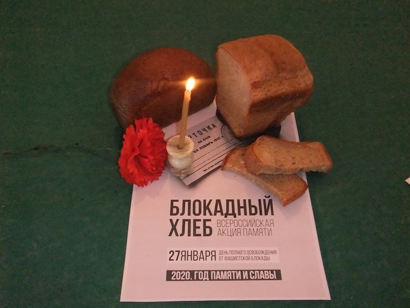 27 января жители нашего села приняли активное участие совместно с Домом Культуры, библиотекой и Каировской ООШ во Всероссийской Акции памяти «Блокадный хлеб». Мероприятие проходило в школе, для присутствующих была оформлена книжно-иллюстрированная выставка «Прорыв блокадного кольца». Заведующая Домом Культуры (Л.В. Анисимова) рассказала о Всероссийской Акции памяти «Блокадный хлеб», библиотекарь (В.В. Кажаева) рассказала о событиях блокады, о цене маленького кусочка хлеба, о подвиге советского народа, рассказ сопровождался показом слайдов. Дети читали стихи о блокадном Ленинграде, о тяжелом и голодном военном времени, когда порой единственной едой был кусочек хлеба весом всего лишь в 125 грамм. Присутствующим раздали кусочки хлеба, чтобы они смогли окунуться в ту суровую пору, положив драгоценный кусочек на ладонь. Видеоролики «Дневник Тани Вассоевич» и «Кусочек хлеба на один день в блокадном Ленинграде» не оставили никого равнодушными. Детям раздали листовки «Блокадный хлеб», в память об этом трагическом событии. Завершилось мероприятие зажжением свечи памяти и минутой молчания о погибших в то тяжелое военное время.