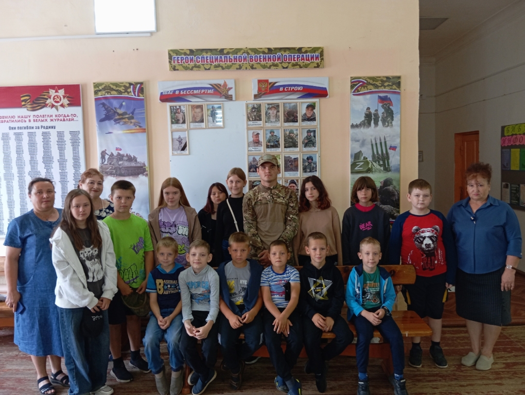 В Доме культуры села Каировка прошла встреча с участником СВО Николаем Игнатьевым. Николай - бывший выпускник Каировской ООШ, поэтому данное мероприятие стало для односельчан, а особенно для учащихся школы  очень важным событием. Николай рассказал присутствующим  о целях проведения специальной военной операции, о суровых буднях солдатской жизни, о том, как важна для бойцов поддержка родных и близких. В ходе встречи, ребята прочитали военно-патриотические стихотворения, задали Николаю вопросы. В заключение все сфотографировались на память.